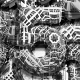 Magnificent technological background consisting of moving digits from a metallic strange complex