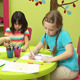 Group of kids sitting at table and drawing with diligence
