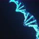 Holographic DNA strand lightning with blue color against black background during rotation