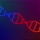 Animation of glowing red purple and blue 3D double helix DNA strand spinning on gradient background. Medicine genetics science concept digitally generated image.