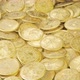 A lot of pirate doubloons in one pile. Pirate wealth and treasure.