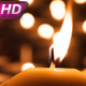 Four large candles close up against the background of many small lights. Air slowly rocking fire. Filmed at a speed of 120fps