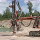 Drilling rig making explosive holes in limestone quarry. Rock drilling machine working on open cast mining.