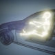 driver with visible bones at transparent car