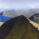 Drone flying through clouds. Aerial view of green grass mountain chain, in background blue sea and majestic landscape. backgrounds. Pristine nature. High quality 4k footage