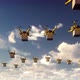 Autonomous delivery of parcels by unmanned drones flying on a Sunny day.