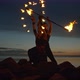 Dynamic fire show. Sexy couple perform poi dance blue sky. Poi performance. Fire dancing. celebration. Performing art. Fun and entertainment