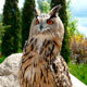 Owl nocturnal predator. Big head, big round eyes in the front of the head, beak short, predatory. It hunts at night, plumage soft, silent flight, claws long, sharp