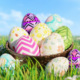 Colorful Easter Eggs in Basket on grass Field