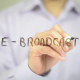 Man, Businessman, entrepreneur, freelancer, software engineer, programmer writes on transparent wall :E-Broadcast