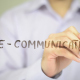 Man, Businessman, entrepreneur, freelancer, software engineer, programmer writes on transparent wall :E-Communication