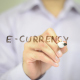 Man, Businessman, entrepreneur, freelancer, software engineer, programmer writes on transparent wall : E-Currency