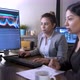 Video editors working at night at new project editing audio film montage sitting in start-up business office. Person content creator using professional computer, modern technology, network wireless, of editing.