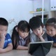 Children are interested in learning with a tablet in the classroom, With a bright smiley face.