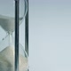 Closeup of glass egg timer with sand pouring timelapse