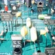 Electronic components inside a technological device: microchips, transistors, LEDs, and semiconductors. Technological background of electronic circuit board.