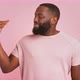 Empty promises, blah concept. Lier. Annoyed african american man showing bla bla bla gesture and grimacing over pink studio background