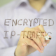 Man, Businessman, entrepreneur, freelancer, software engineer, programmer writes on transparent wall : Encrypted IP-Traffic