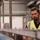 Engineer checking machine in bottle factory