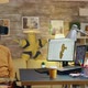 Engineer in home office working in virtual space designing a new model with floating holograms