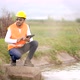 4k Engineer Taking Notes on Water Canal Used for Agriculture
