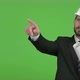 The Engineer with Blueprint pointing with Finger against Chroma Key