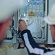 Engineers checking solar panel setup. Engineer working on checking and maintenance equipment at green energy solar power plant