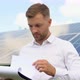 Engineers checking solar panels. Alternative energy ecological concept.
