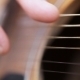 Male hand plays guitar string