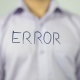 businessman Man, Software Engineer or freelancer writes on Transparent Screen ” Error “