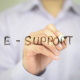 Man, Businessman, entrepreneur, freelancer, software engineer, programmer writes on transparent wall :E-Support