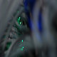 Details of Ethernet server, fully loaded, blinking lights indicating sending and receiving of data.