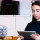 Executive using digital tablet in office