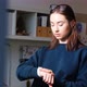 Executive using smartwatch in office