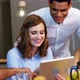 Executives using digital tablet in the office