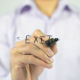 Man, Businessman, entrepreneur, freelancer, security incharge writes on transparent wall : Exit