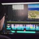 Experienced video editor working on a big project. A man edits a blog or a movie.