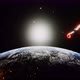 Exploring the universe among the stars using international scientific spaceships. Orbiting spaceship in the univers, shuttle into atmosphere. Images from NASA. 3D render animation