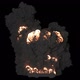 A giant explosion of combustible fuel with thick black smoke. An explosion with black smoke on an isolated background with an alpha channel, an explosion of fuel or explosives.