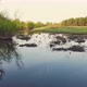 Extensive spring flood, river overflow, flooded trees, aerial view. Snow is melting, high water levels, flooded banks, fields, trees. Warm sunny day, soft light. UHD 4K.