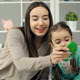 Close up of mother and daughter playfully making up