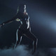 Attractive girl dancing in the dark in slow motion, spotlight at her side