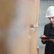 Factory manager using tablet computer in warehouse or factory . Industry and supply chain management concept .