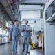 specialist worker engineer team control and operate printing package lable machine with computer screen with concentrate and focus industrial factory machinery ideas concept