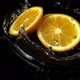 Falling of orange in water. Slow motion.