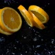Falling of orange in water. Slow motion. remaining
