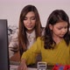A large family with children at school makes a controlled robot out of plastic parts of the constructor. The concept of technical children’s education.