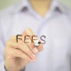Man, Businessman, entrepreneur, stock trader, analyst or banker writes on transparent wall : Fees