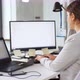 business, programming and technology concept – female programmer with computer working at office and male worker passing by