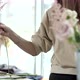 Young Florist Assembles a Rustic Wedding Bouquet. Young florist assembles a perfect wedding bouquet. Her flowers are wonderful, the colors are so rustic, she has perfect taste. She’s happy to have small business
